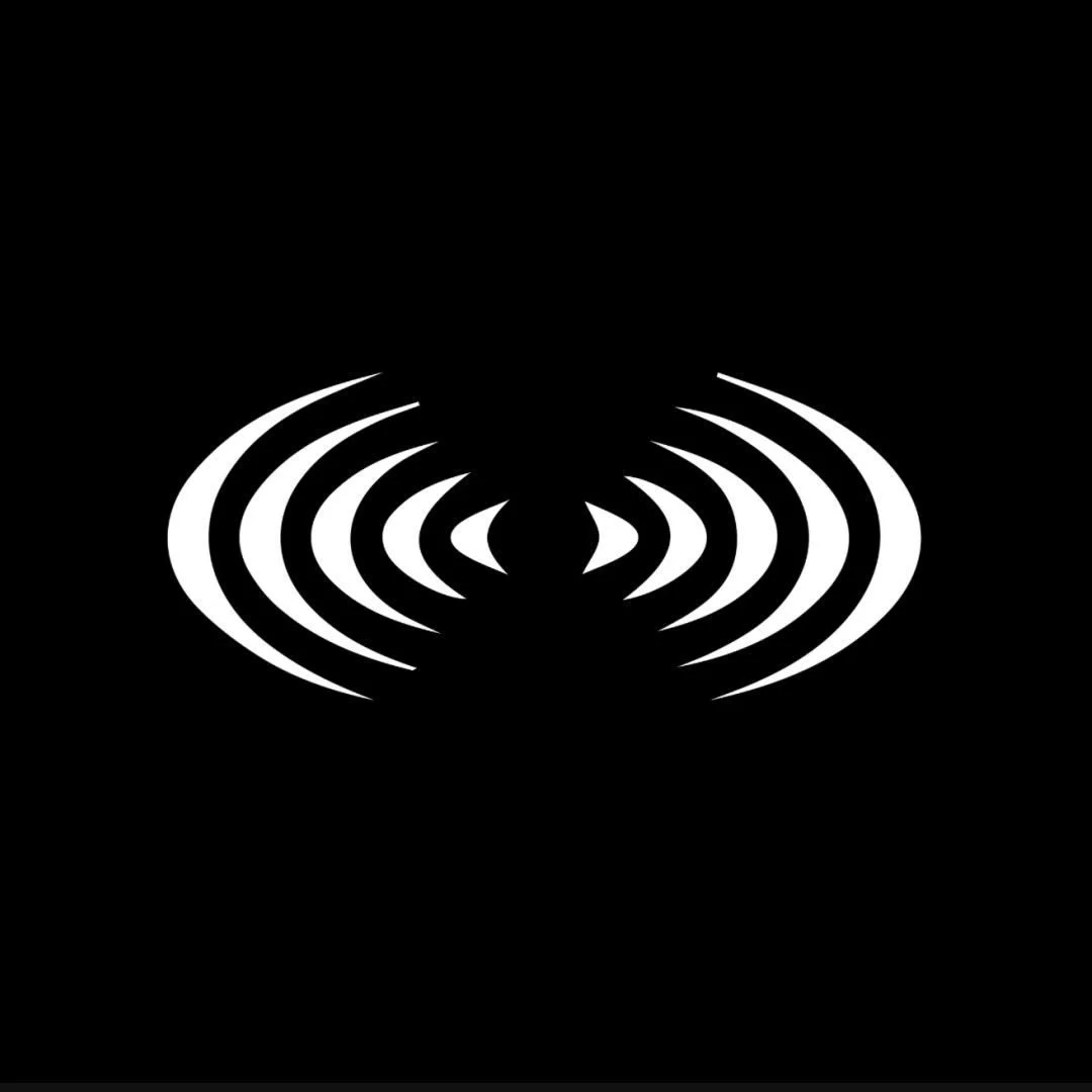 Black and white photo of a person with tattoos on their arm, leaning forward with their head bowed, in a darkly lit environment.